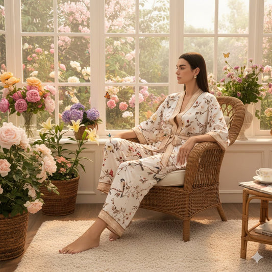Bei Kimomi glauben wir, dass Nachtwäsche mehr sein sollte als nur etwas zum Schlafen. Unsere Satinpyjamas für Damen vereinen Luxus, Komfort, Weiblichkeit und Entspannung. Mit einem Pyjama von Kimomi fühlen Sie sich rundum wohl – ob beim Entspannen auf dem Sofa oder an einem ruhigen Morgen mit einer Tasse Kaffee. Unsere Pyjamas sind aus hochwertigem Satin gefertigt, der sanft auf der Haut gleitet und einen wunderschönen Glanz hat. Der seidig-weiche Stoff unserer Damennachtwäsche ist zudem atmungsaktiv und sorgt so für ein angenehmes Schlafklima. Wir bei Kimomi möchten, dass sich jede Frau schön fühlt. Deshalb bieten wir unsere Pyjamas in den Größen XS bis 3XL an. Denn bei Kimomi dreht sich alles um Schönheit in all ihren Formen und um Damenbekleidung und Kimonos , die nicht nur gut aussehen, sondern auch Gutes tun. Suchen Sie also nach einem weichen Pyjama für Damen ? Dann sind Sie bei Kimomi genau richtig!